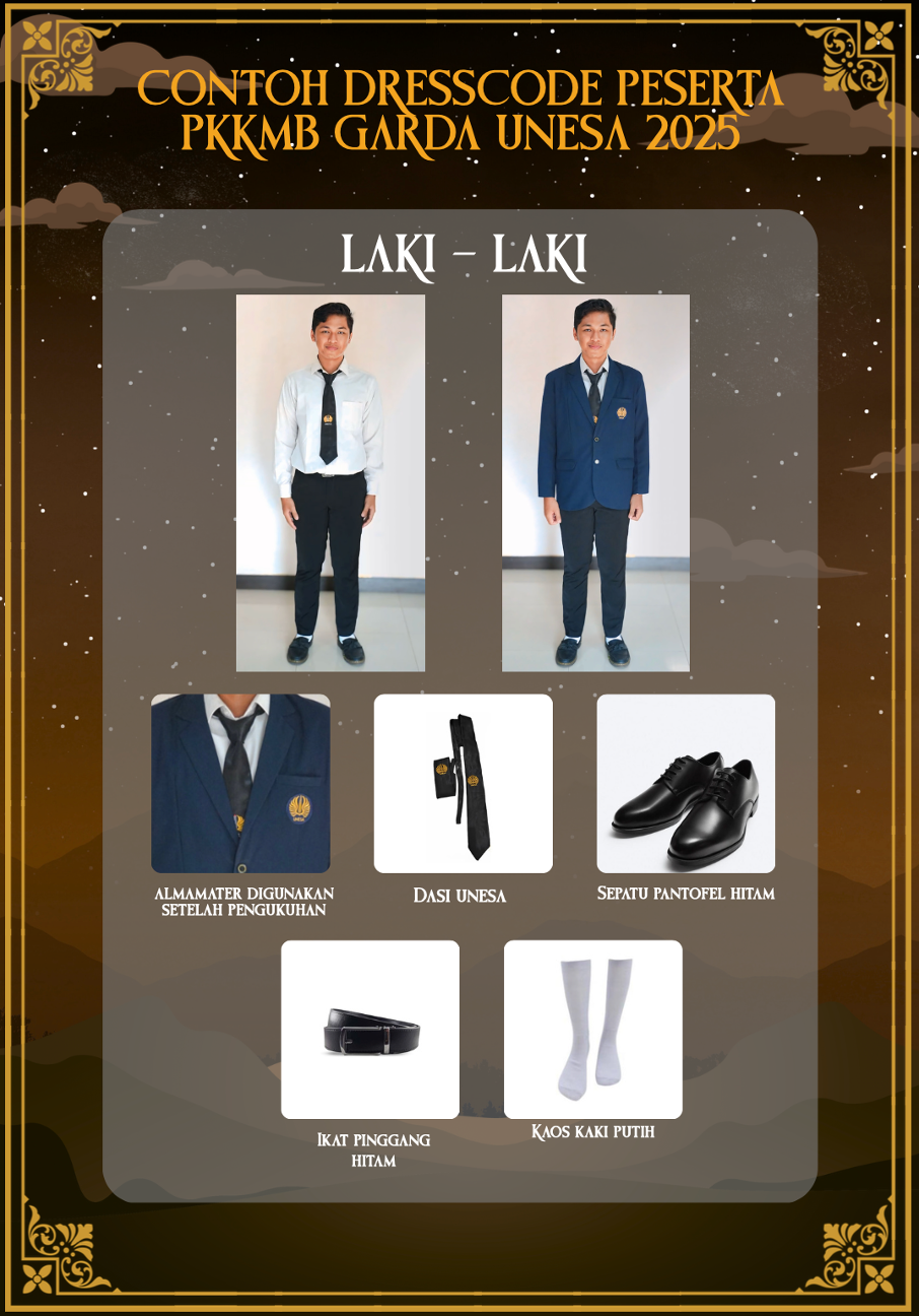 Sebagai bagian dari rangkaian kegiatan Pengenalan Kehidupan Kampus bagi Mahasiswa Baru (PKKMB), Garda UNESA 2025 hadir untuk memperkenalkan budaya akademik, nilai-nilai kebangsaan, dan etika mahasiswa kepada para peserta baru. Agar kegiatan berjalan dengan tertib, efektif, dan mencerminkan nilai-nilai luhur universitas, setiap peserta diwajibkan mematuhi tata tertib resmi yang telah ditetapkan oleh panitia.